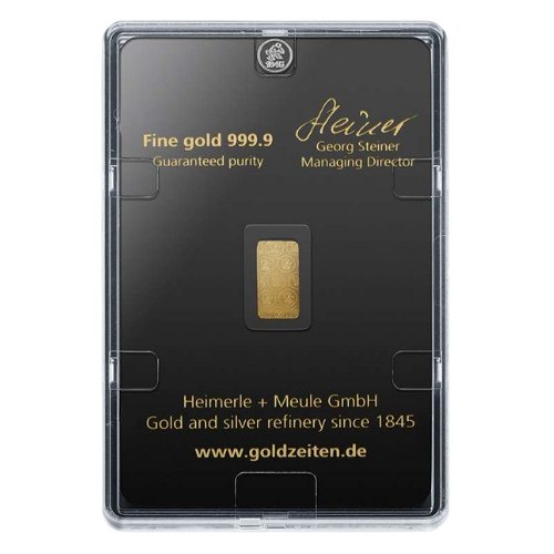 LBMA certifikat znači da ova kovnica ispunjava stroge kriterije kvalitete udruženja sudionika s najvećeg tržišta zlata na svijetu – onog u Londonu. Taj certifikat je garancija svim kupcima Heimerle Meule poluga da sadrže navedenu količinu i čistoću zlata. To također znači da je zlatna poluga 2.5 grama lako unovčiva i ima vrlo likvidno tržište. Isto vrijedi za sve ostale poluge ove kovnice. Osim zlatne poluge od 2.5g, u ponudi postoje i poluge od 1g, 5g, 10g, 20g, 1 unce, 50g i 100g.