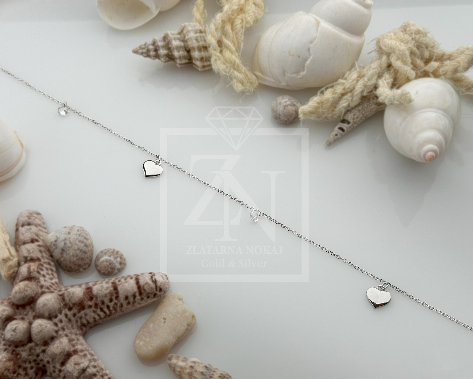 Dimenzije privjeska: srce 0,6 cm x 0,7 cm, cirkoni 0,4 cm x 2 kom