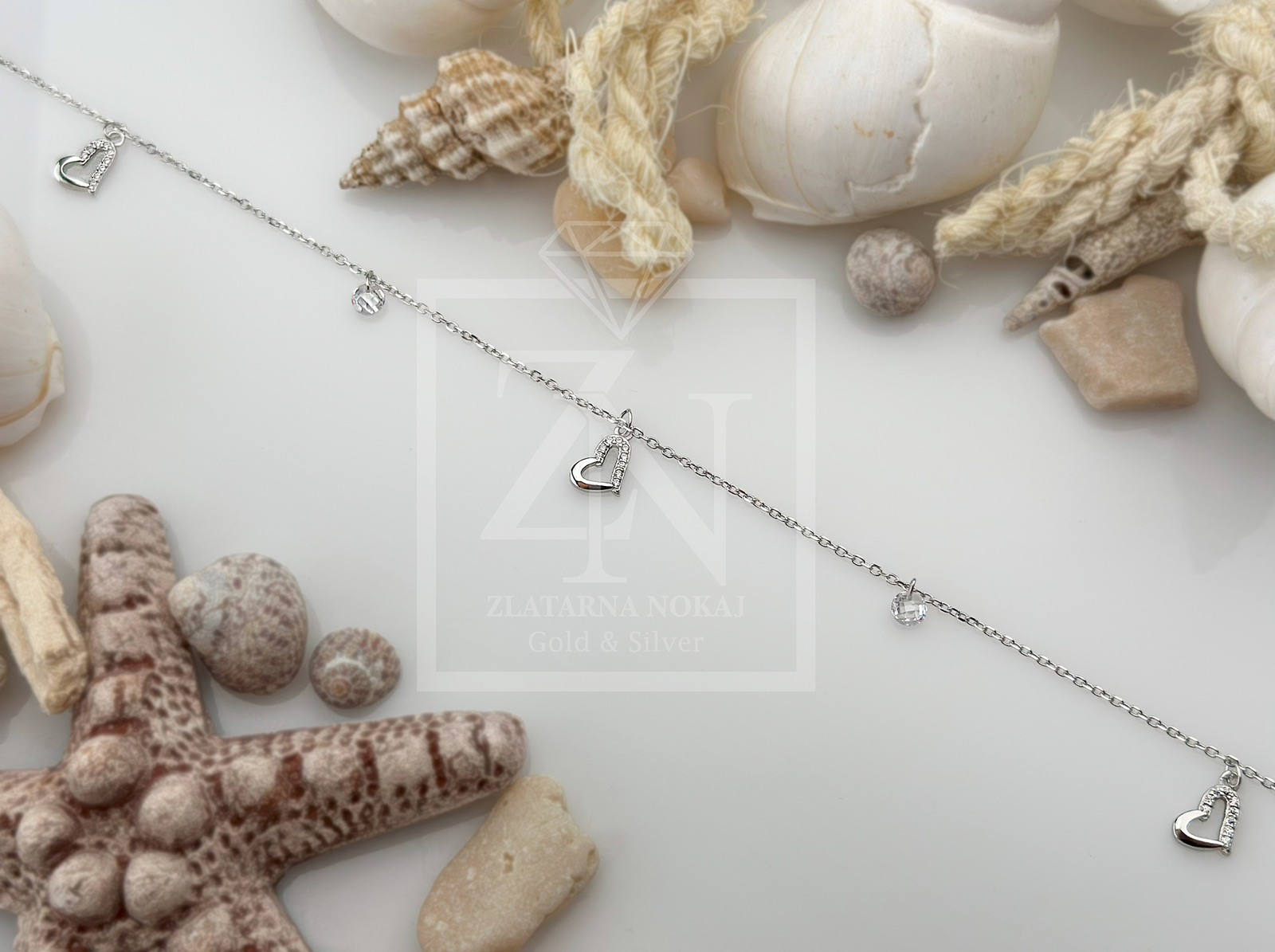 Dimenzije privjeska: SRCE 0,8 cm x 0,6 cm i cirkoni 0,4 cm x 2 kom