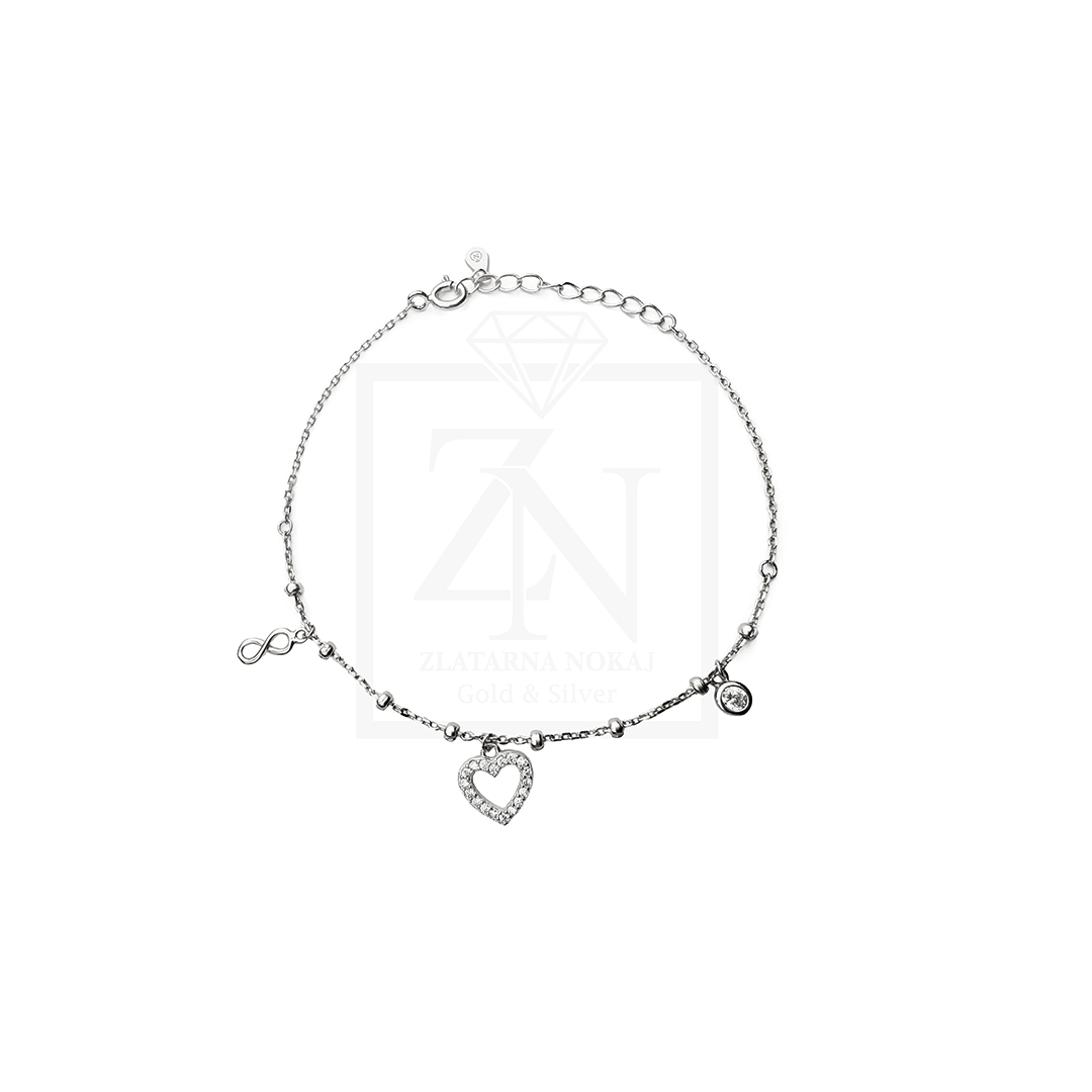Dimenzije privjeska: srce 0,8 cm x 0,7 cm cirkon 0,3 cm infinity 0,1 cm x 0,4 cm