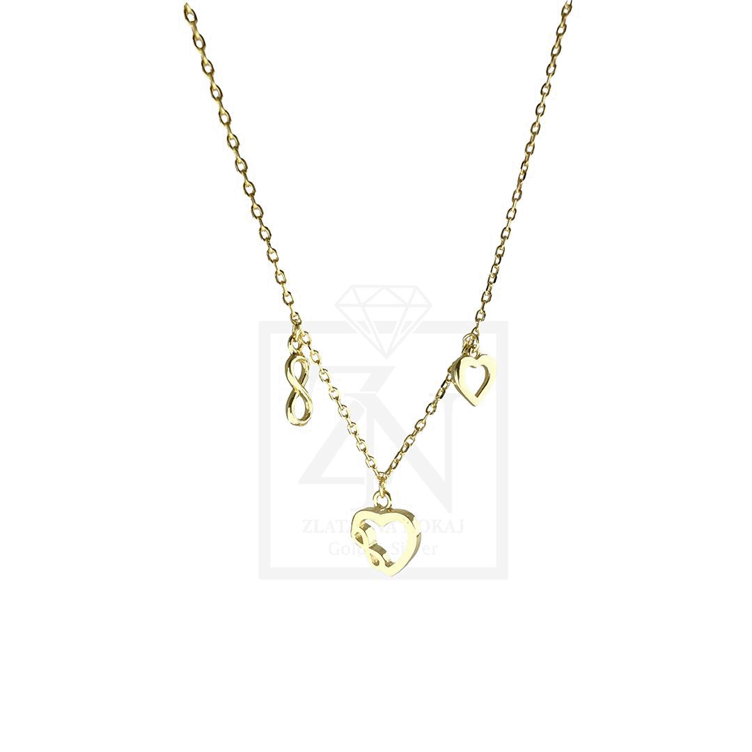 Dimenzije privjesaka: infinity 0,9 cm x 0,4 cm, srce 0,8 cm i malo srce 0,6 cm