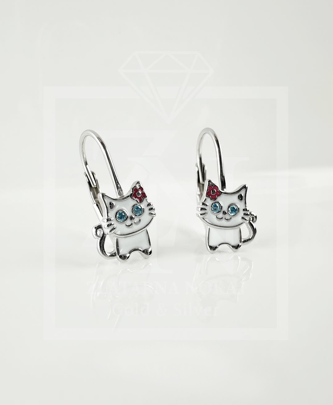 Srebrne viseće naušnice Blue eyes cat