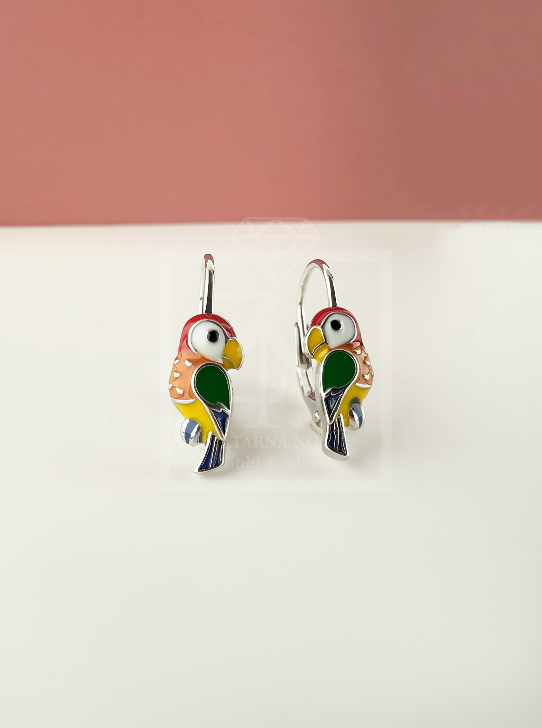 Srebrne viseće naušnice Papiga