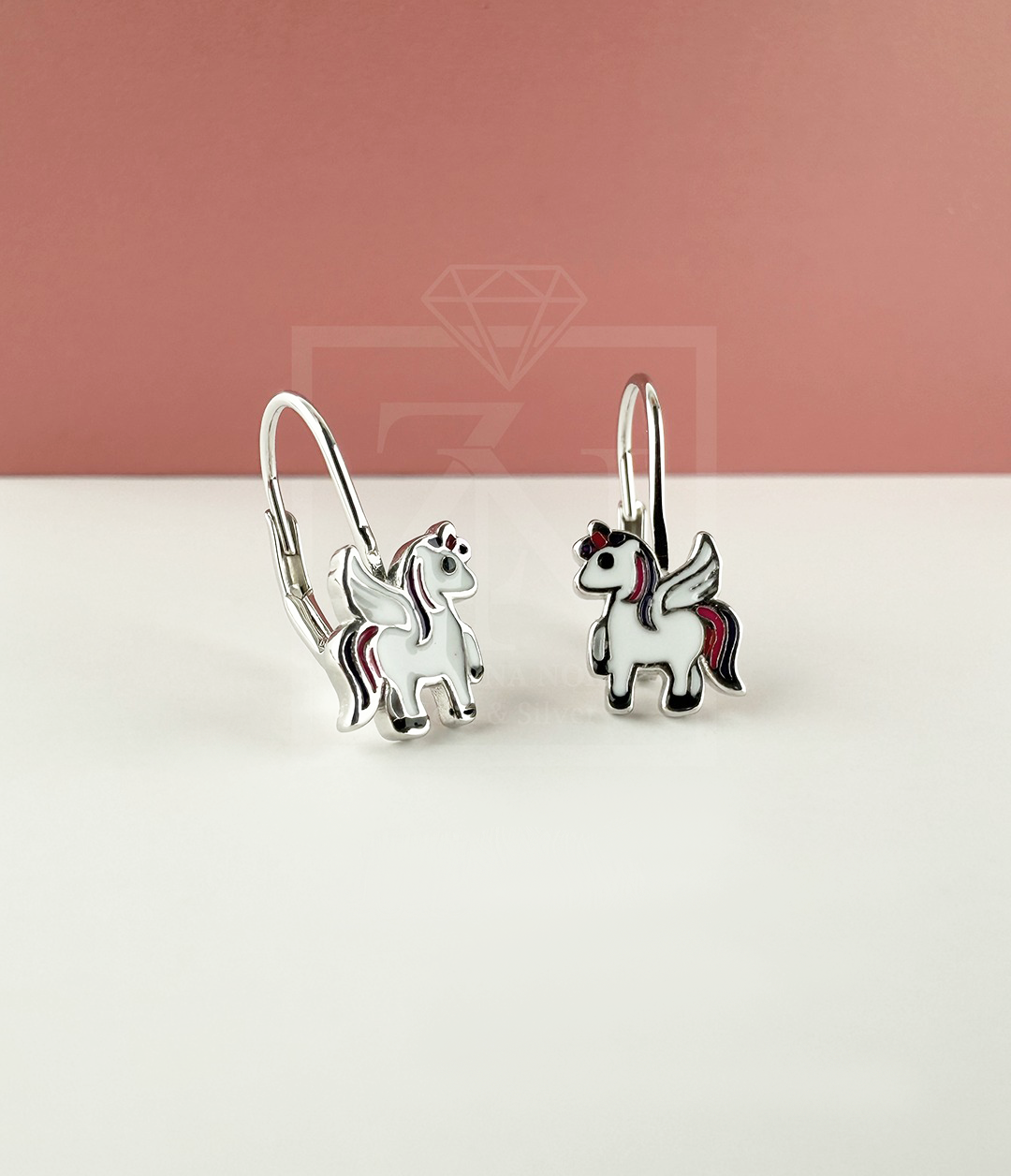 Srebrne viseće naušnice Unicorn with wings